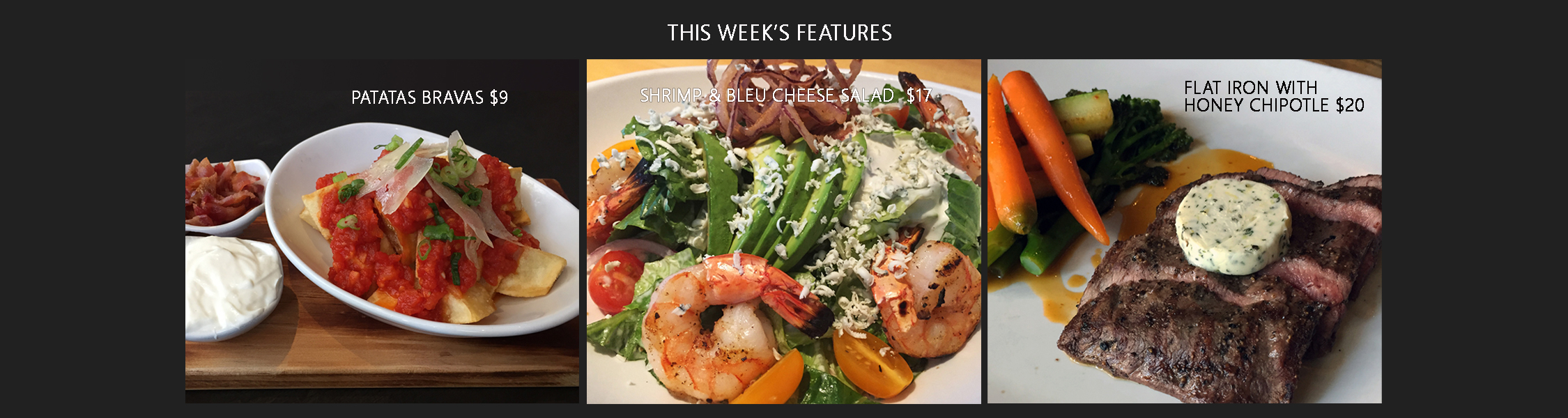Group 1- Patatas Bravas- Shrimp Bleu Salad- Flat Iron Honey Chipotle Published October 11, 2017 at 2250 × 600 in Group 1- Patatas Bravas- Shrimp Bleu Salad- Flat Iron Honey Chipotle
